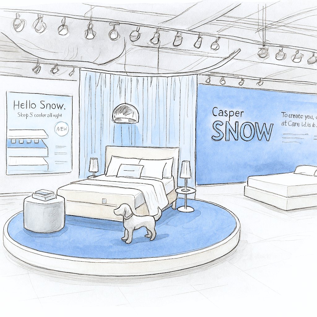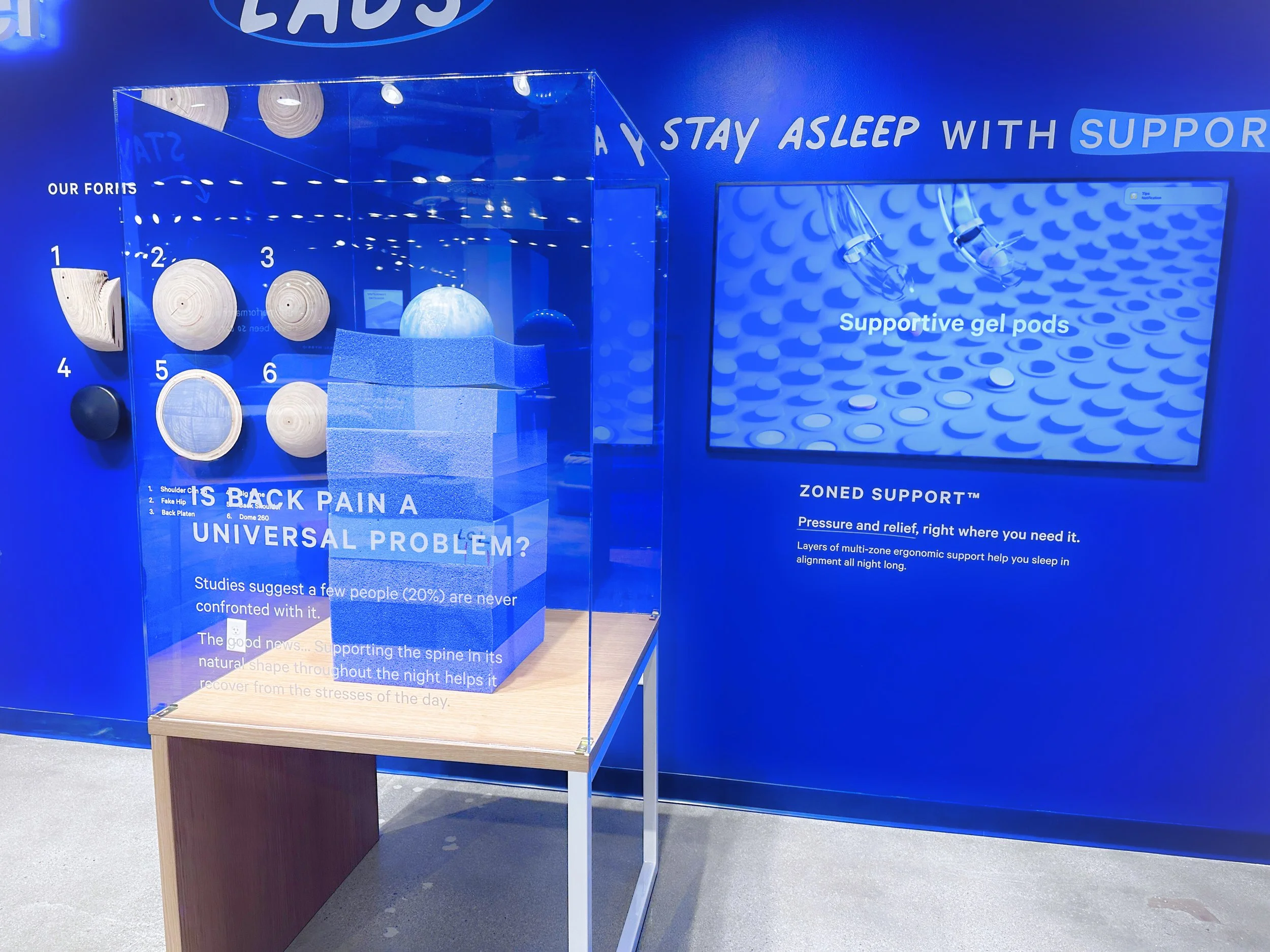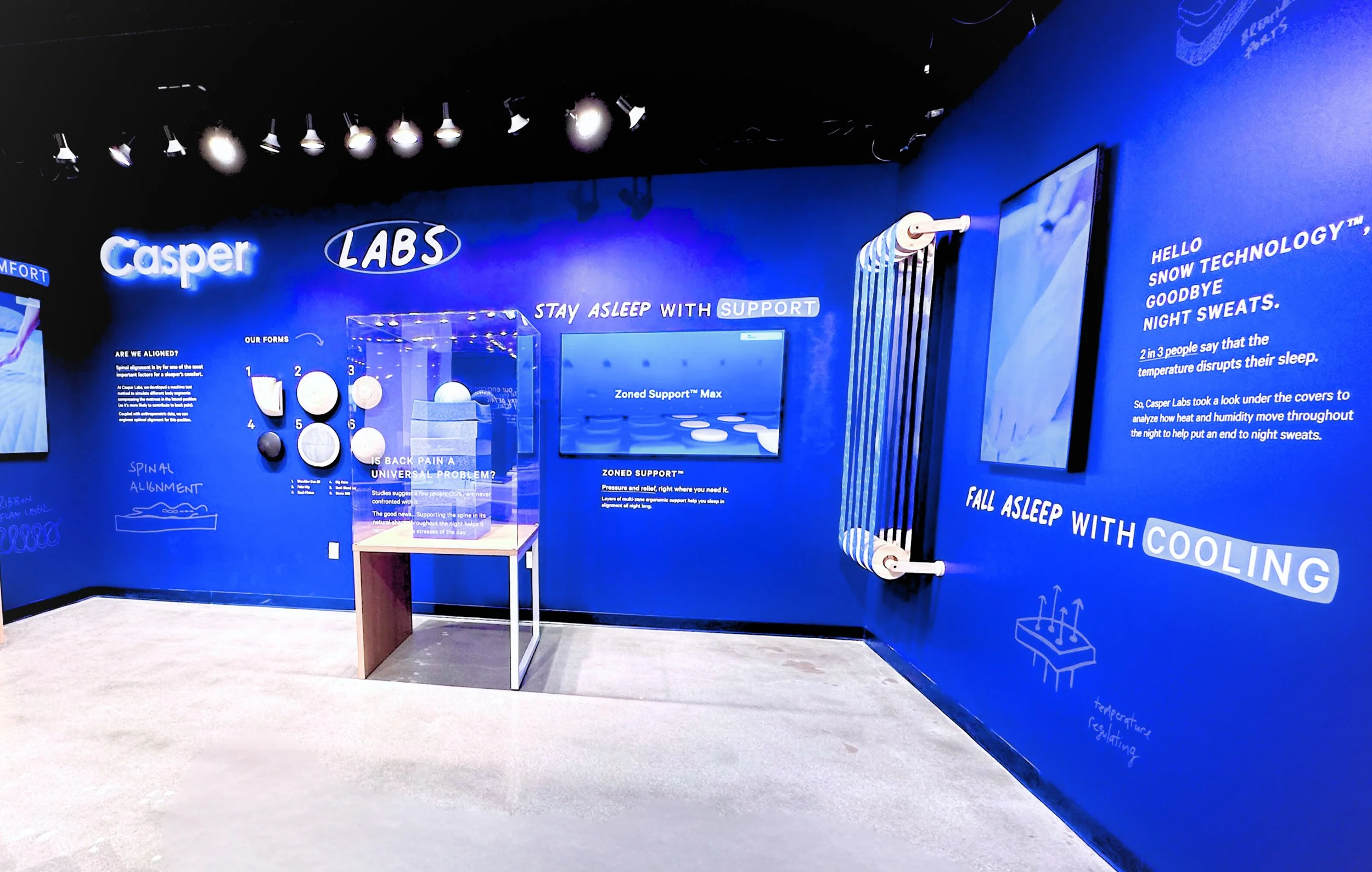 The Casper Showroom is anything but a snooze. It is a brand celebration that balances product clarity with playful display.