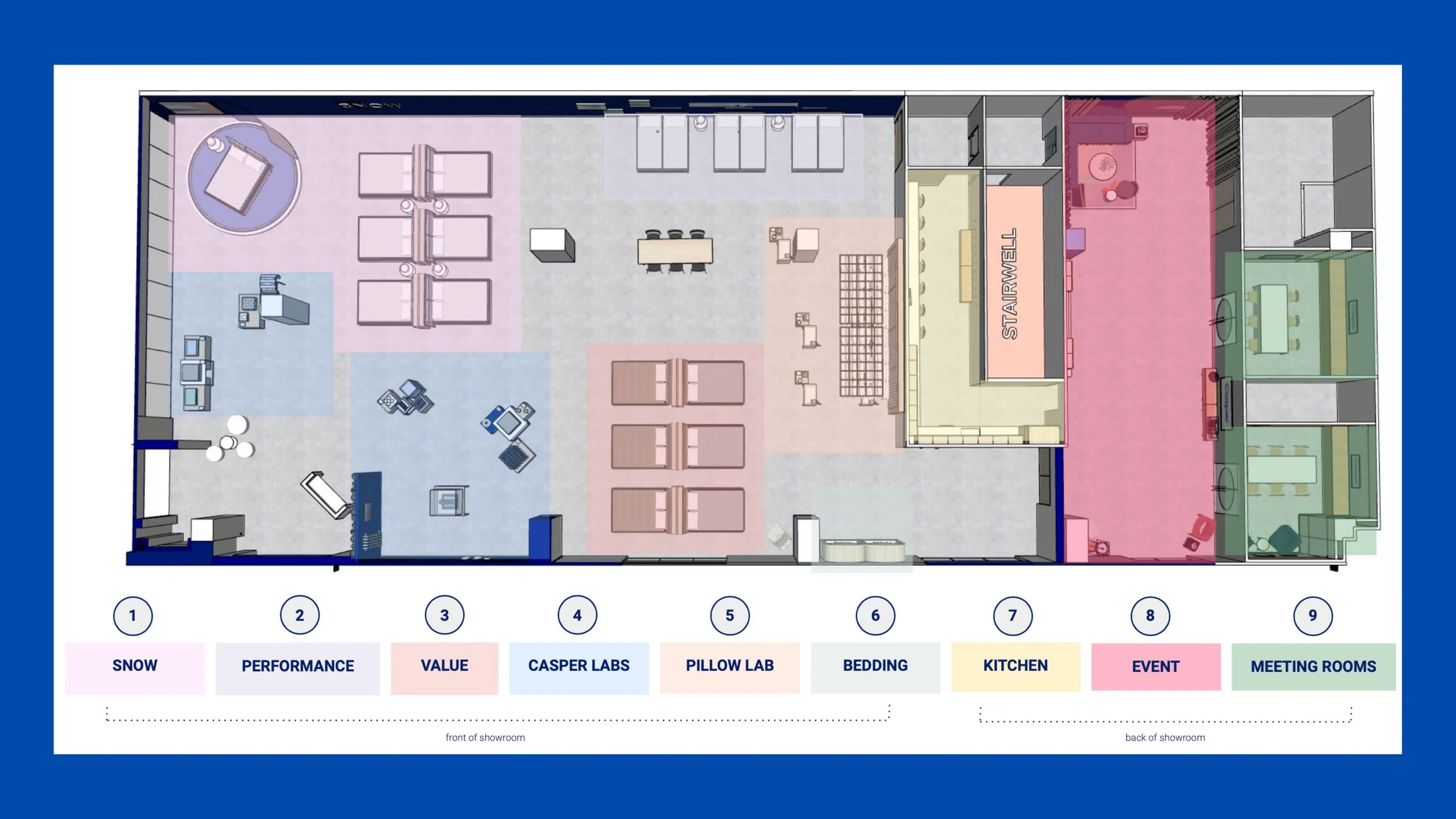 Casper is a leader in sleep. At the heart of the brand is Casper Labs, a Brooklyn space where ideas become real products. We developed the showroom concept to share that same spirit of innovation with potential wholesale partners.
